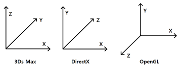 그래픽스 라이브러리인 OpenGL과 DirectX는 y축이 위 방향을 나타내지만, z축의 방향이 서로 다르다.