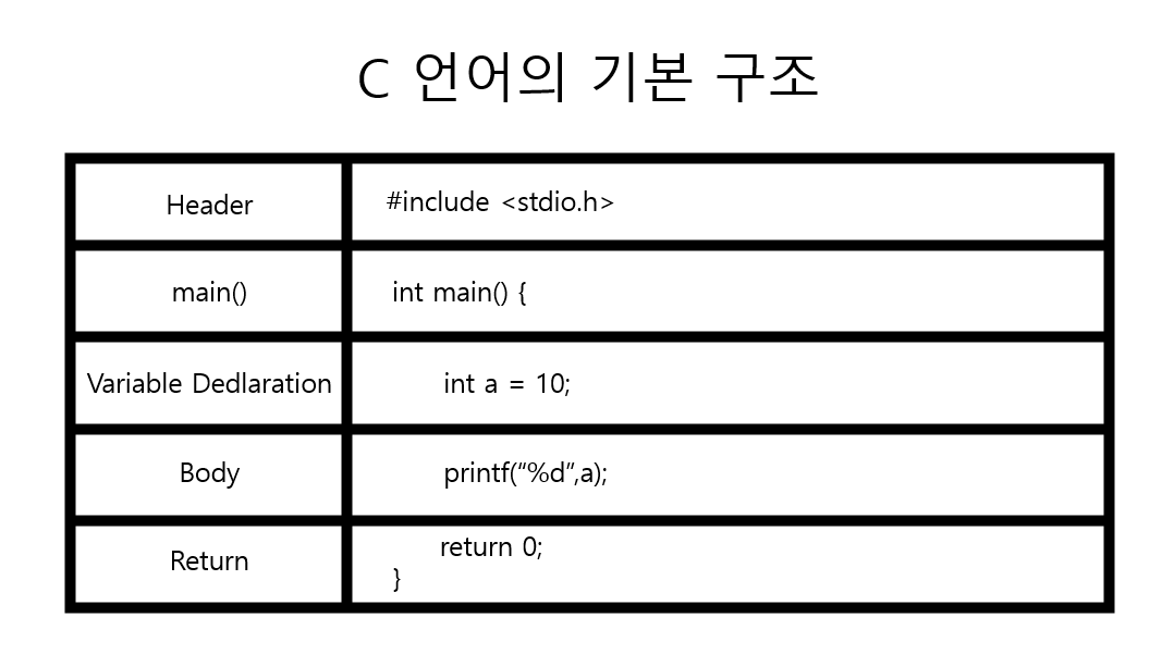5. Return 문 : C 프로그램의 마지막 부분은 return 문입니다. return은 함수에서 값을 반환하는 것을 나타냅니다. 이 return 문과 반환 값은 함수의 반환 유형에 따라 다릅니다. 예를 들어 반환 유형이 void면, return 문이 없기도 합니다. int, char 등에 따라 해당 유형으로 반환하여야 합니다.