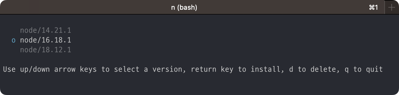 - sudo n rm {버전} : 특정 버전의 Node.js 제거